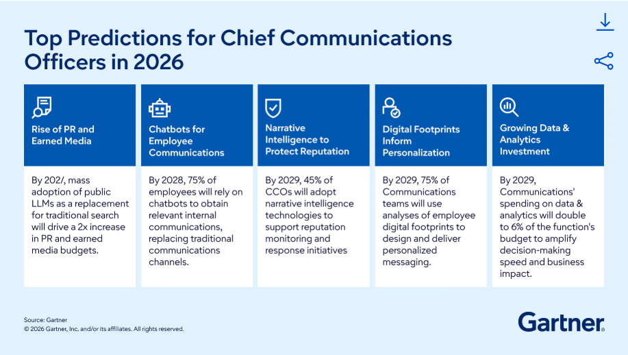 That shift becomes even more urgent in light of Gartnerâs latest forecast that public relations budgets could double within the next two years. Gartner bases its prediction on the rapid shift from internet search to AI search and the fact that earned media is at the heart of it. As my article explains it's not that simple and don't fall for the hype and snake oil.
